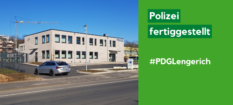 Die Polizei in Lengerich hat sich im neuen Dienstgebäude eingelebt und wartet nun auf die feierliche Einweihung des Gebäudes am 28.03.22. Im Hintergrund wird fleißig am neuen Mehrfamilienhaus in Lengerich gearbeitet. Hier entstehen zum Ende des Jahres 17 neue Wohneinheiten, die Arbeiten schreiten planmäßig voran.